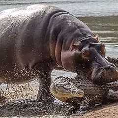 ワニvsカバ ワニが捕まえたヌーを横取りするカバ エニグム Enigme